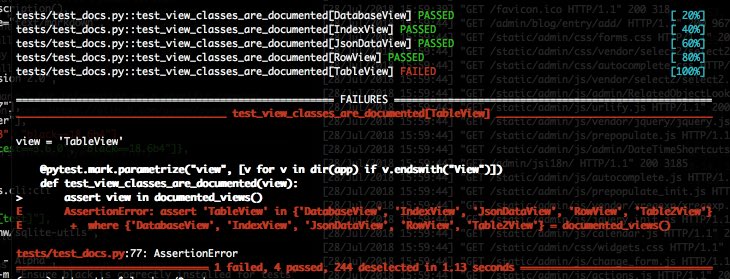 parametrized tests and how the xfail decorator can be used to ship the tests without breaking the build even when some docs have not been added yet