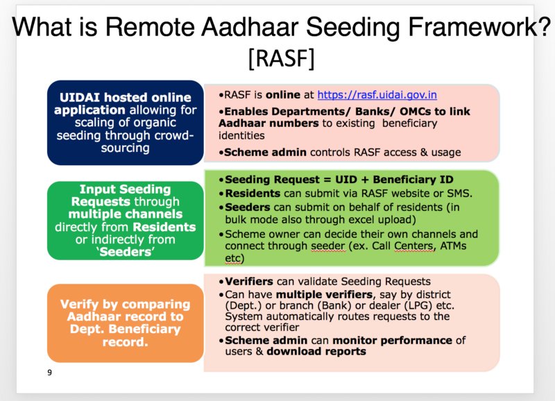 What is Remote Access Seeding Framework (aka) RASF? Why was it hosted on "rasf.uidai.gov.in"? Did it contain Bank A/c, Caste and scheme data?