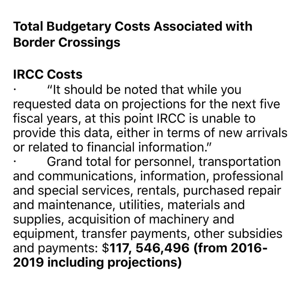 5) The data we received today shows a cost of $270M for the illegal border crossing crisis, at the federal level, without total provincial costs, projections for future migration, deportations, etc.
