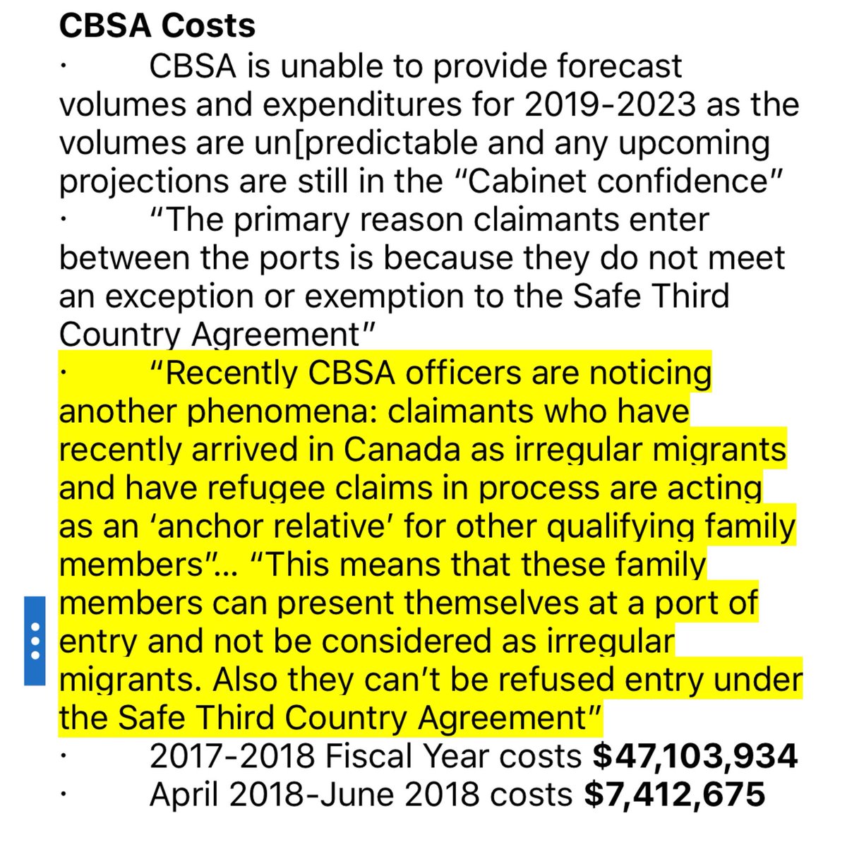 3) CBSA refuses to divulge their projections - we will be challenging this, as it affects budgetary plans. Also, people who have crossed illegally and claims asylum are now being used as “anchor relatives”, so the STCA doesn’t apply to them. No projections on this.