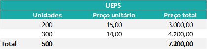 (5) Já no método último a entrar, primeiro a sair (UEPS), as unidades que foram compradas primeiro serão as últimas a serem reconhecidas no custo e vice-versa. Assim, o COGS será de R$7.200,00 #CFA