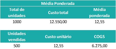 (6) Com a média ponderada, chega-se a um preço unitário médio do estoque, nesse caso de R$12,55 e o COGS será de R$6.275,00. #CFA