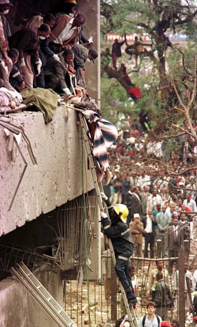 A powerful, deafening bomb explosion from the truck completely tore down half of the embassy. Confusion reigned.