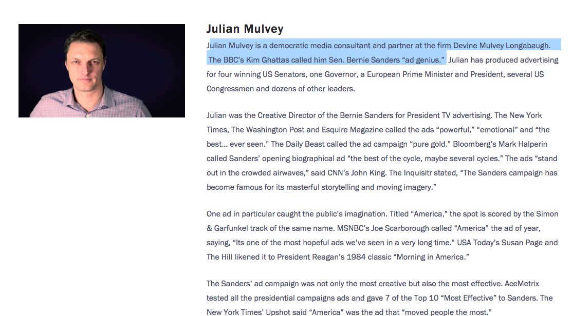 So, just in case you're wondering, yes, Julian Mulvey, who worked for Manafort, is "Sen. Bernie Sanders' “ad genius"" & is married to a woman who sold her "Dem" firm to Alex Castellanos, a major Trump guy.