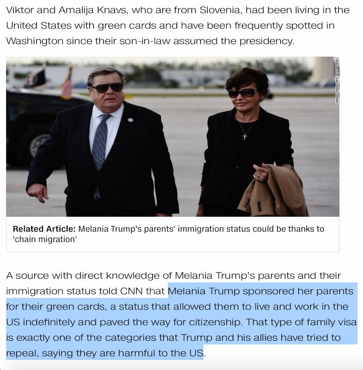 Aug 9, 2018: Trump's in-laws become US citizens thanks to Melania's sponsorship [i.e. CHAIN MIGRATION].