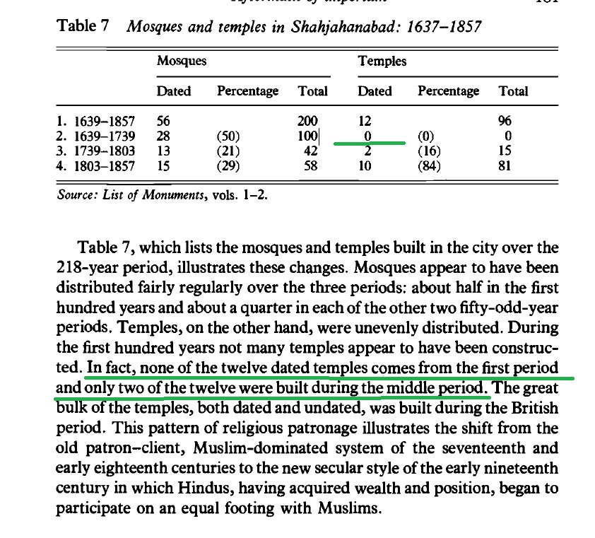 Clearly, @iamrana's claim is false. ASI's archaeological record shows there was not a single Hindu temple built in Mughal capital Purani Delhi(Shahjahanabad) until Mughal decline in 1739.