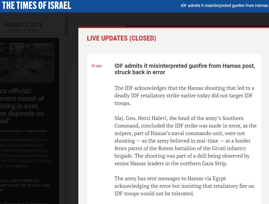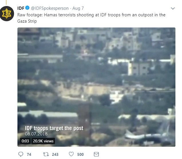 Earlier this week, the Israeli Military tweeted it had been fired on from Palestinians inside the Gaza Strip to justify their attack killing Palestinians inside Gaza.