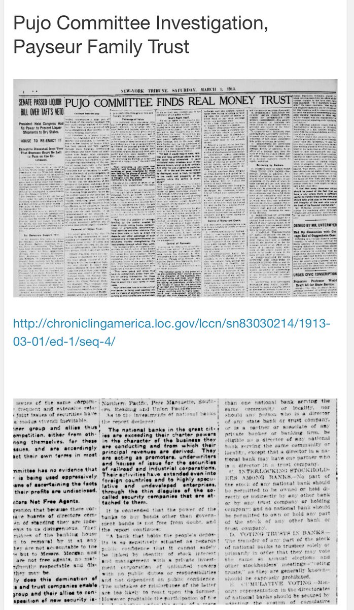 #Payseur Companies are the parent of the FED Reserve. The Pujo Committee investigated [P} ties to banks overstepping their powers.
