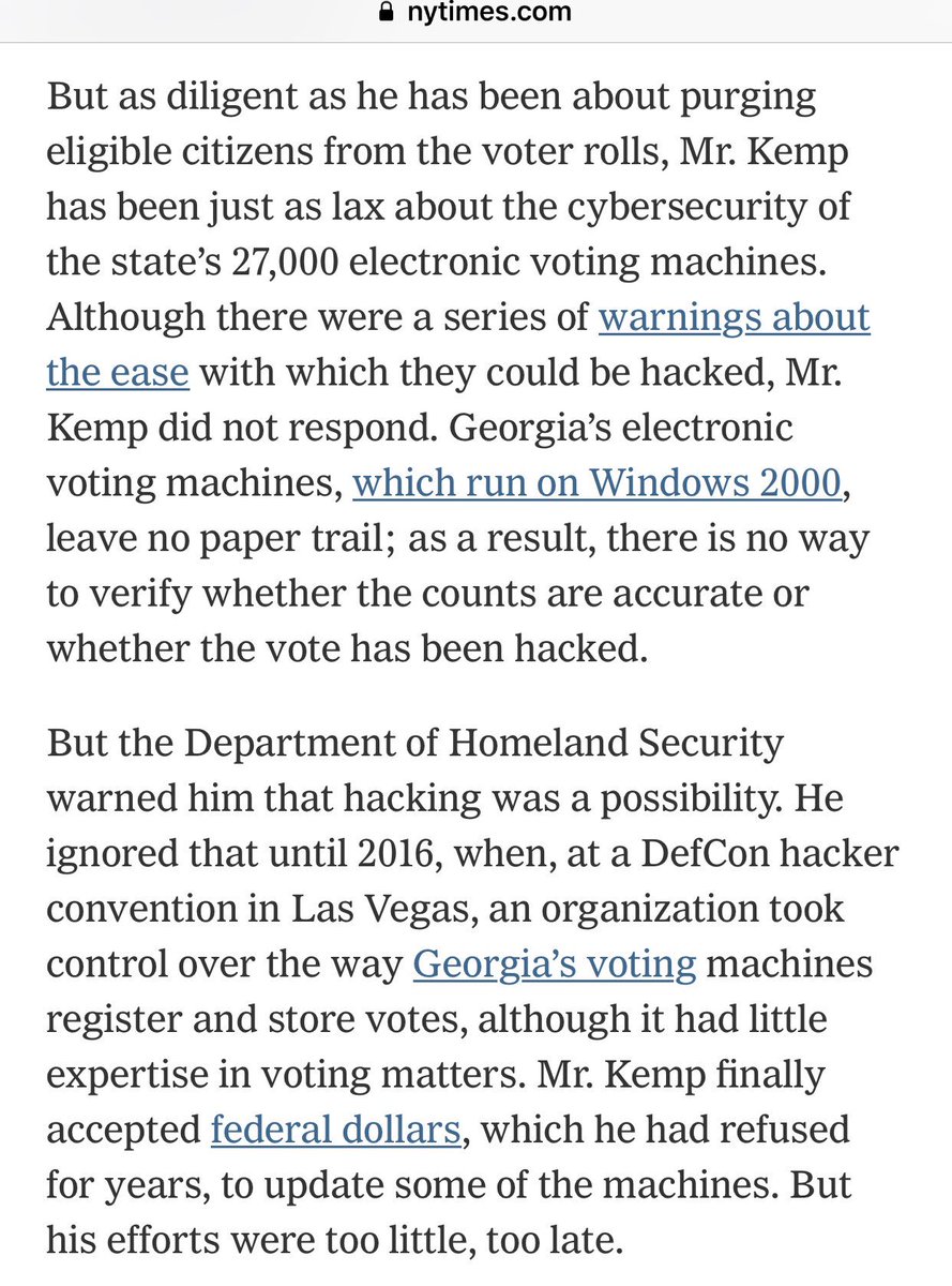 “Georgia’s electronic voting machines run on Windows 2000.” (Our 20yo son, literally, did a spit-take when I told our family about this!)