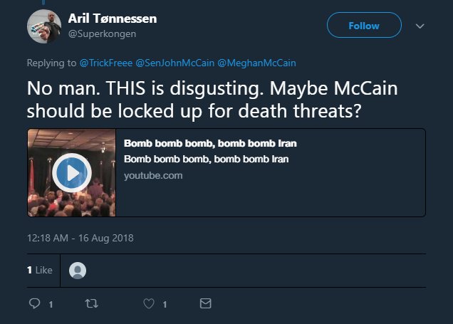 What a miserable, despicable person. You are the definition of deplorable. I may frequently disagree with @SenJohnMcCain and @MeghanMcCain with all due criticism, but they should sue you for libel. This is disgusting.
