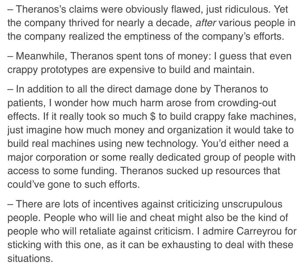 Related: review of @JohnCarreyrou’s _Bad Blood_, about the Theranos fraud, by @StatModeling andrewgelman.com/2018/08/09/bad…