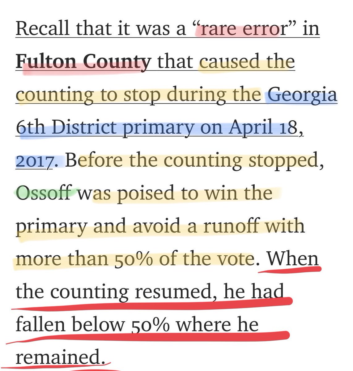 🔥💥🔥💥🔥Remember the close Osofff election last year in Georgia w the rare counting error anomaly in Fulton County⁉️READ THIS👇🎩 tip @jennycohn1