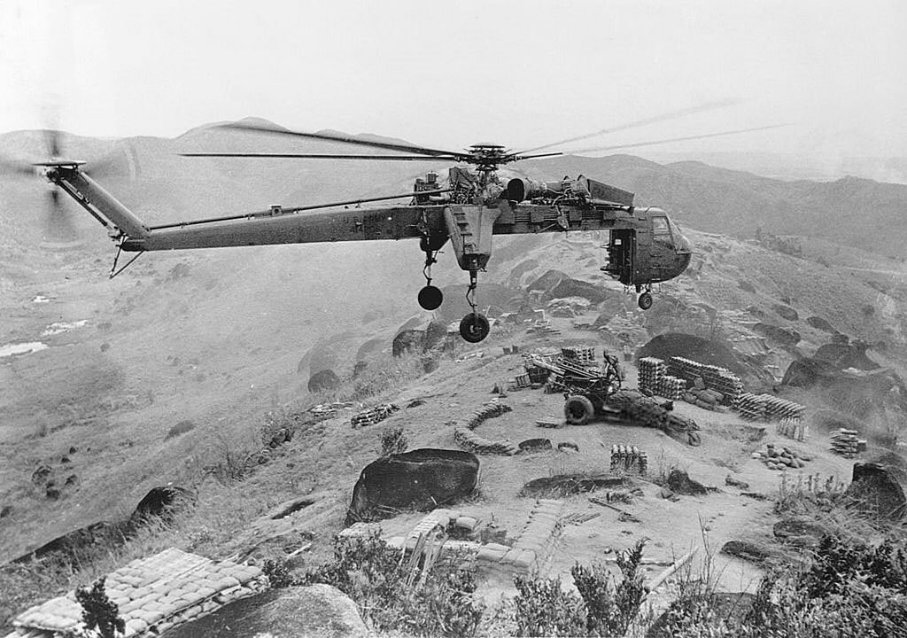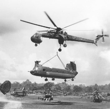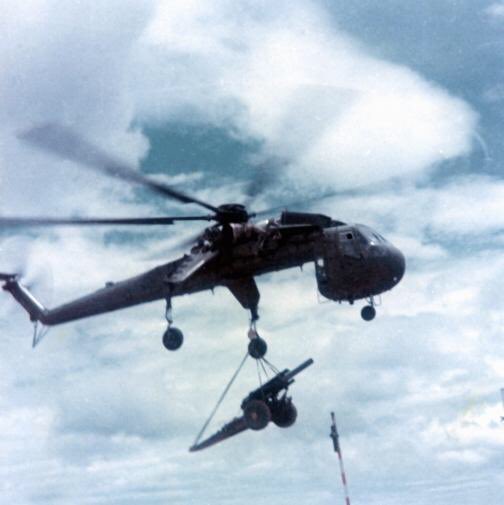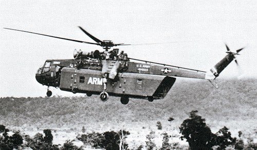 1963, el Us Army prueba un nuevo helicoptero específico de transporte, el CH-54. Compra 6 de los cuales 5 son enviados a Vietnam con la 1º División de Caballería Aérea. Rapidamente demuestran su valía.