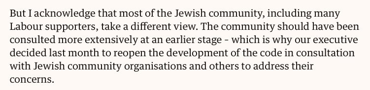 If Labour is supposedly consulting on the IHRA definition with the Jewish community, and there is a "Code Plus" being developed behind closed doors, and that will be voted on a week on Tuesday without anyone except insiders seeing that, how on earth is that a consultation?