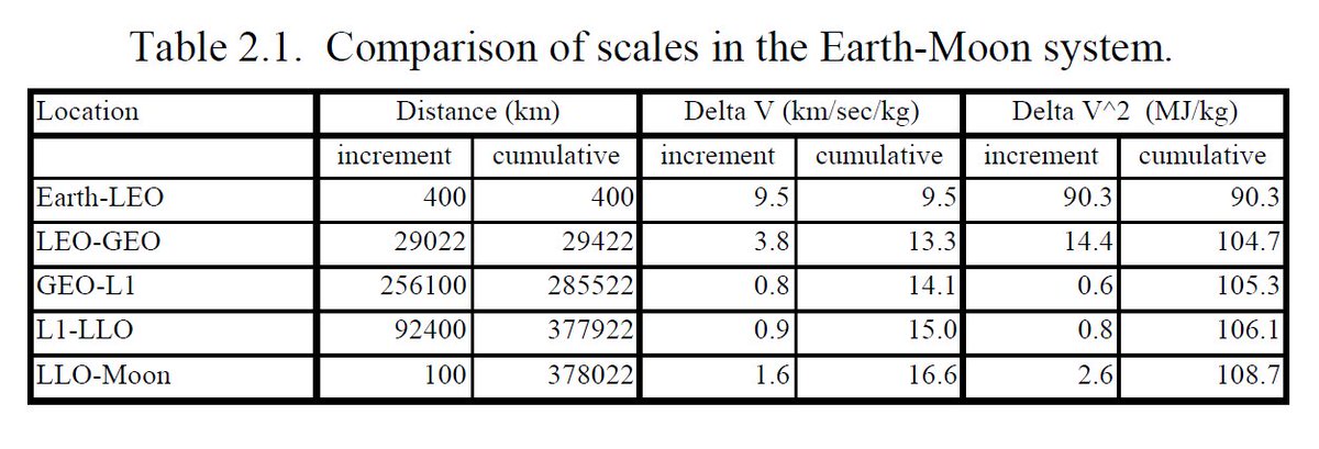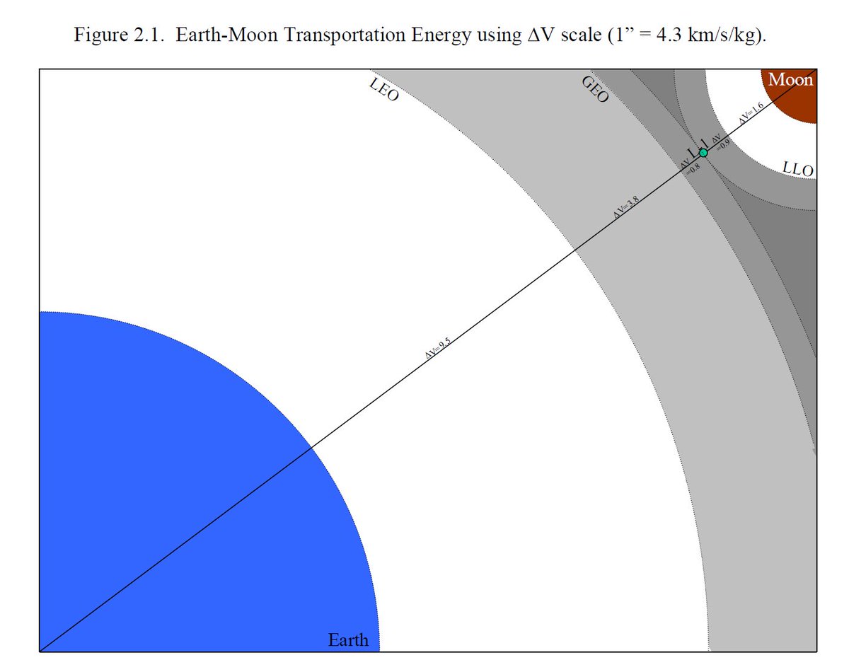 This is a nice illustration of why, even though low Earth orbit is only 1/1000 the distance to the Moon, in terms of energy expenditure it's already more than halfway there. It's a shame we've spent decades going that far but no further.