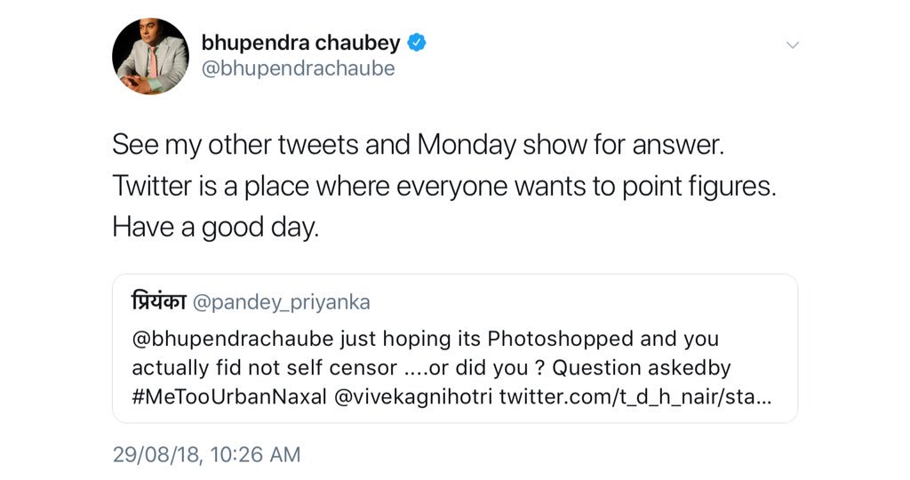 For those who are doubting the first screenshot of the above tweet is photoshopped, this is the reply from Bhupendra Chaubey