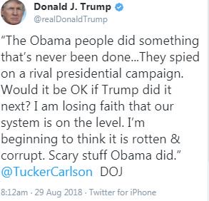 That's an extremely and unusually tight turnaround if Trump is just watching the program and tweeting quotes. And the quotes in the two tweets are too accurate to be on the fly.
