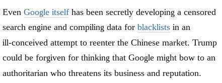 This piece by @JoshRogin makes a good point about Google's China censorship plan & its potential influence on Trump's threat to 'regulate' how the search engine displays content in the US: washingtonpost.com/news/josh-rogi…