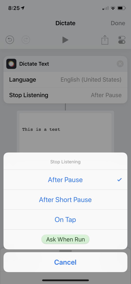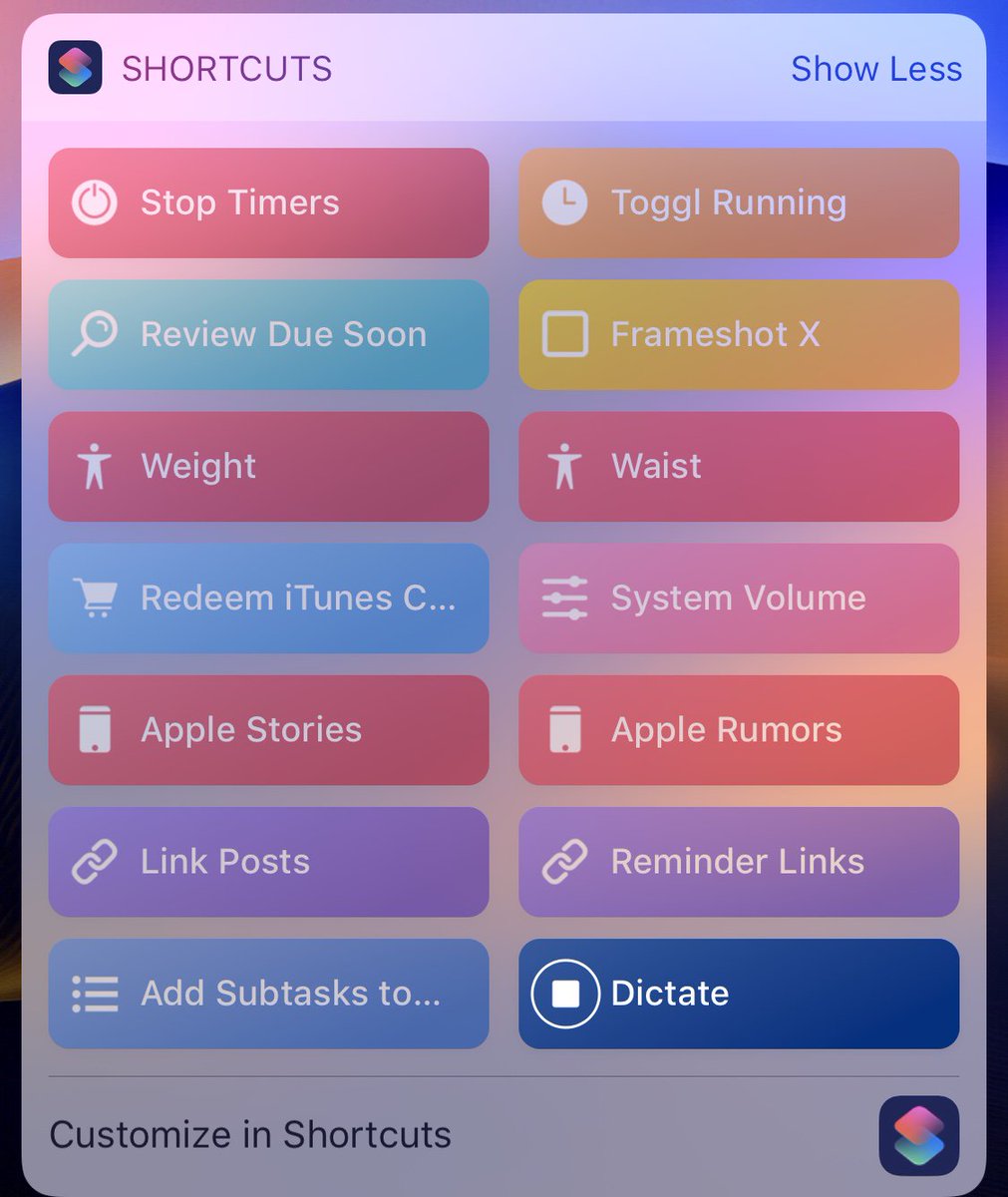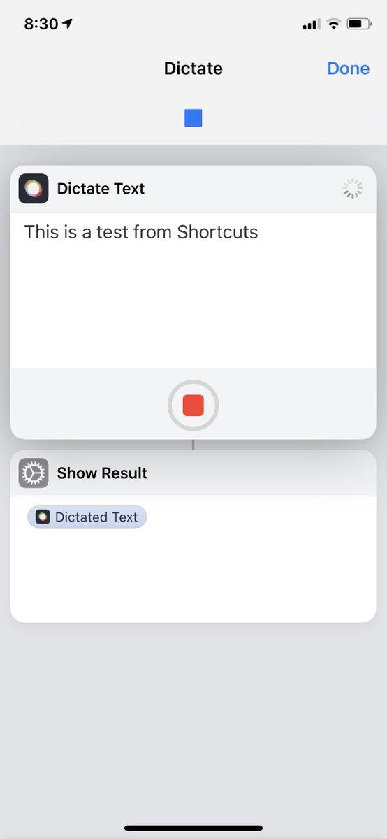 Big improvements to the Dictate Text action in Shortcuts beta 4 – dictation can now stop automatically after a pause AND you can dictate from the widget (!!). This is very very good.