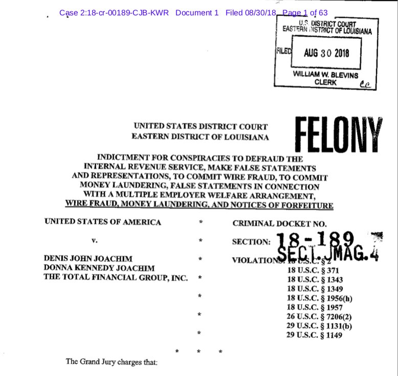 DENIS J. JOACHIM, DONNA K. JOACHIM, and their company, The Total Financial Group, Inc.