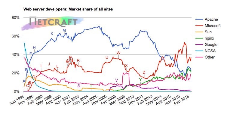 It's even starker when you look at the most important websites. If Netcraft hadn't reclassified CloudFlare from "nginx" category to "other", then nginx would've surpassed Apache by now on the busiest websites.