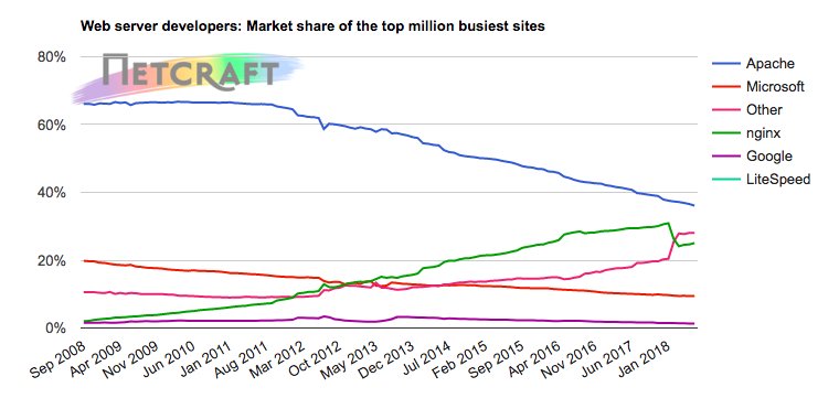 Even today, when I ask corporate IT works, they've all heard of Apache, but most still haven't even heard the name "nginx". BTW, it's pronounced "engine-x" -- I mention that because you've probably not "heard" of it, either :-)