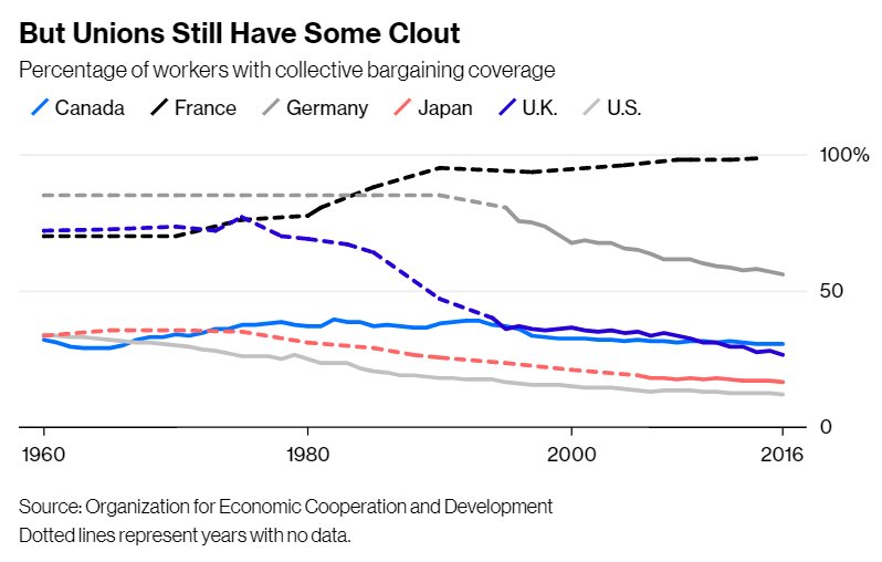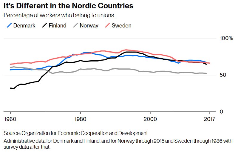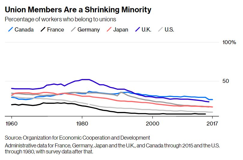 If so, why did unionization decline everywhere?