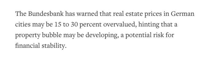 16/ No es que la derecha alemana sea filántropa, sino que tiene sentido de la supervivencia. El BUNDESBANK ha encendido las alarmas y reconoce que se está formando una BURBUJA INMOBILIARIA con riesgos para el sistema financiero. Por eso quieren endurecer el control del alquiler.