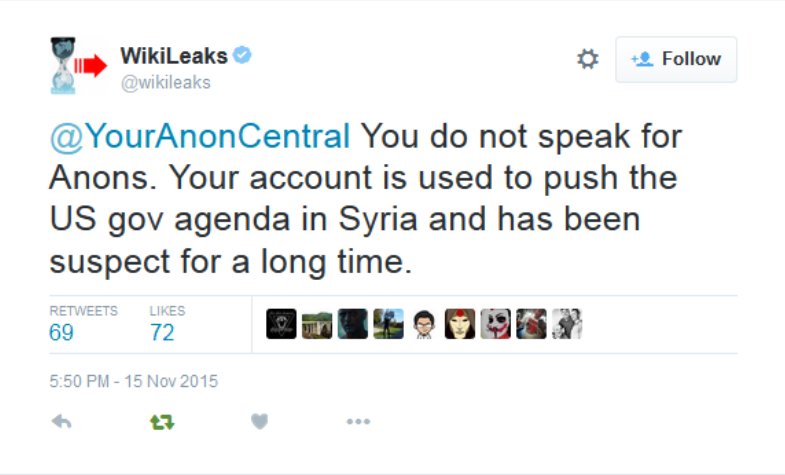 YAC and #Anonymous fully withdrew support from Wikileaks under Assange after confirming pro-Assad regime + Russia government bias, moral bankruptcy, and possible corruption.
