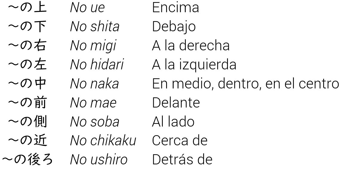 Volviendo a la partícula の, otra función que tiene es la de relacionar objetos entre sí, indicar posiciones y señalar caracteristicas de un objeto, por ejemplo: