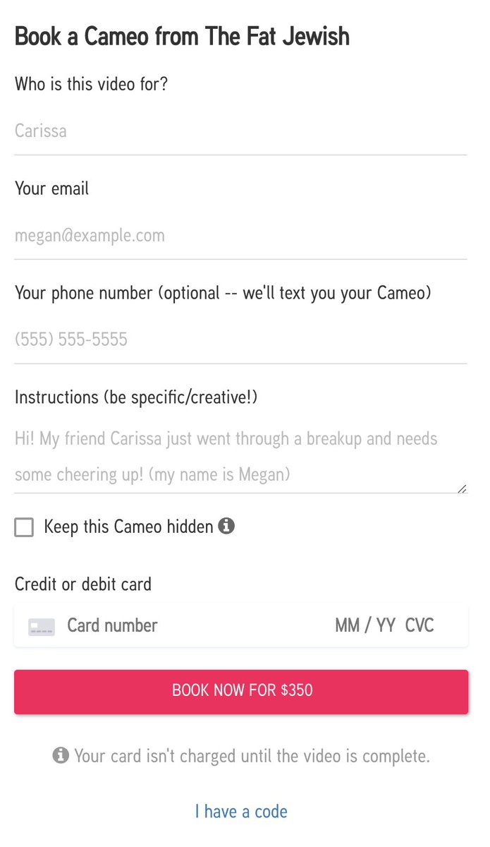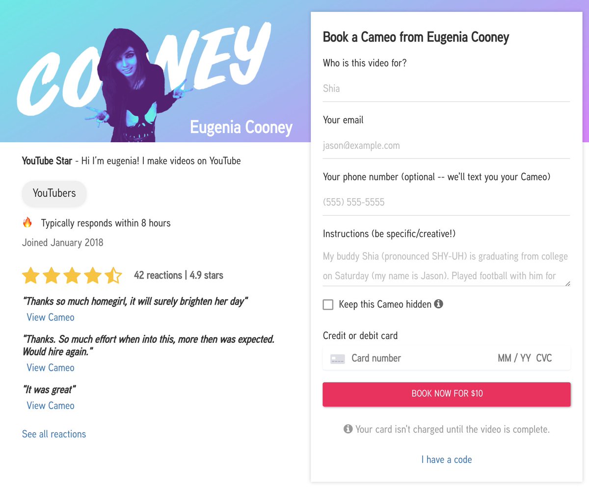 Not the artist, the service that lets you literally hire celebrities, YouTubers, Influencers, Vine Stars, Instagrammers, and stand up comedians to pretend to be your friend.