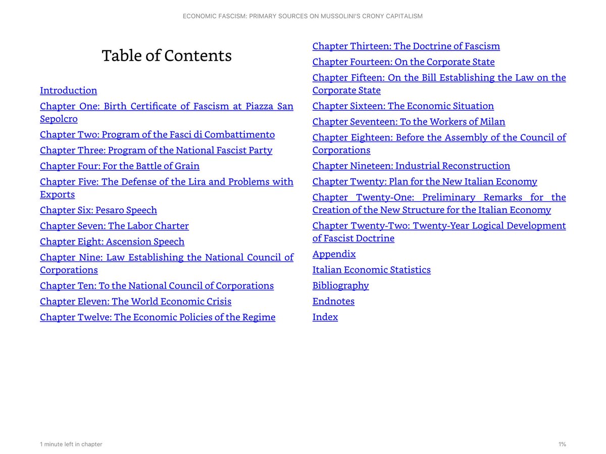 This book contains translated speeches, policies and outcomes of Mussolini’s Economic Fascism - a system that despite its beginnings, ultimately became Crony Capitalism