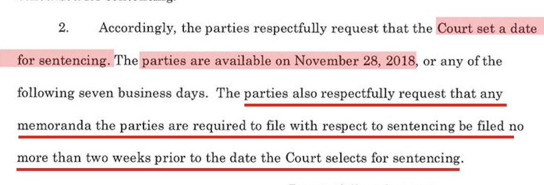 Flynn to be sentenced 11/28 or later. Any documents to be filed *no more than 2 wks prior* to the court date (after midterms).