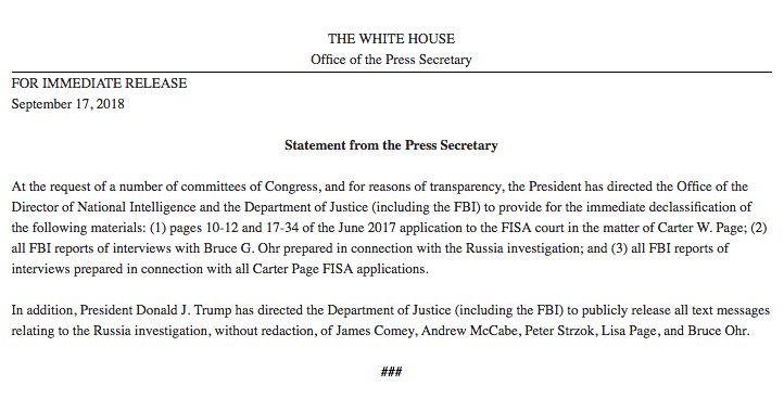 Note: We still have heard no additional info from the White House or Justice Department as to what Trump's formal direction was, or when the material will be made public.
