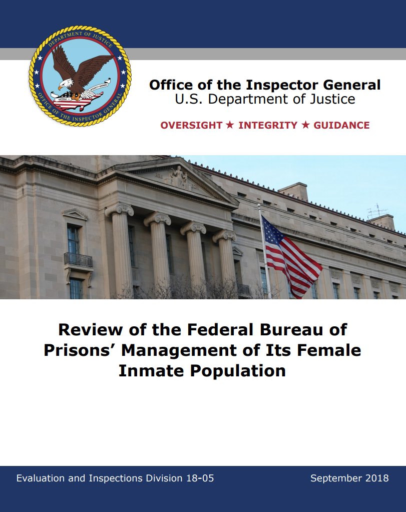 A brief digression from all the Kavanaugh news to talk about a report released today by the DOJ inspector general's office about how the Bureau of Prisons manages female inmates. Here's the report: oig.justice.gov/reports/2018/e…