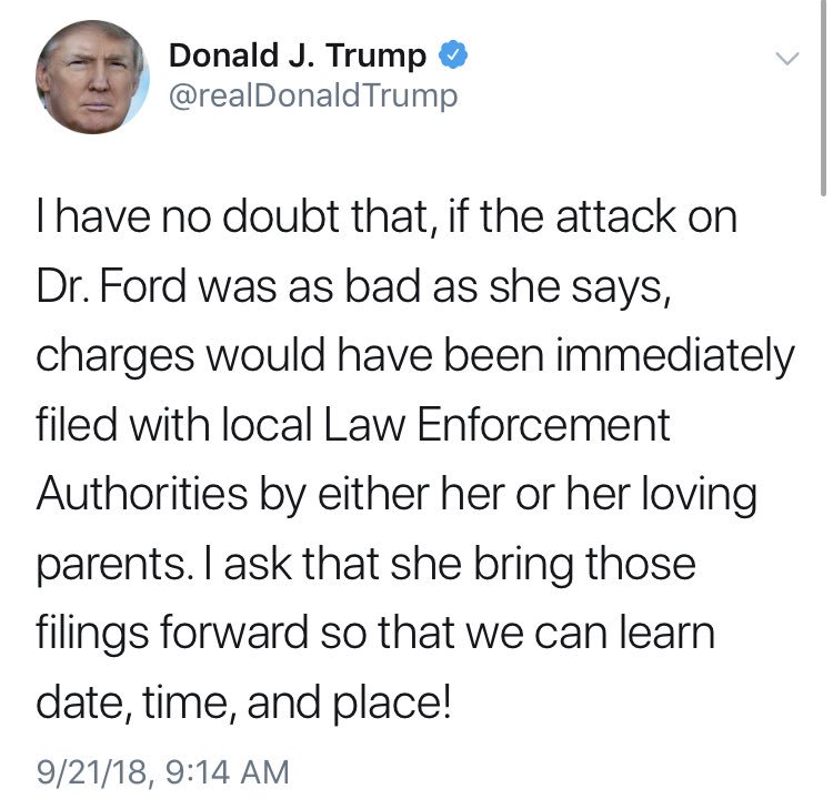 In Kavanaugh news: Trump is now actively taking aim at Dr. Ford, and Ed Whelan has deleted and backed way off his thread.
