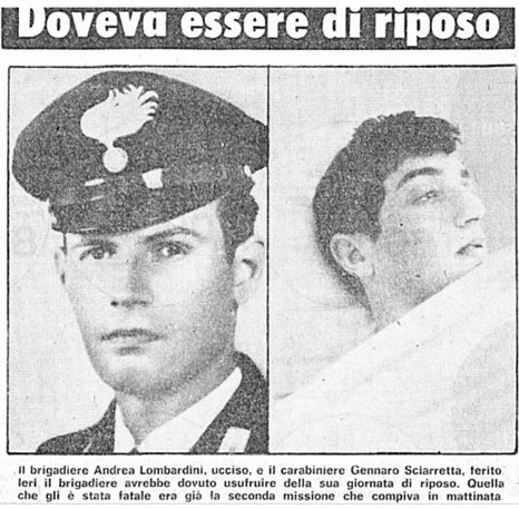 Andrea prende il pulmino 850 con targa dell’esercito e passa a prendere il carabiniere Gennaro Sciarreta, di 20 anni.