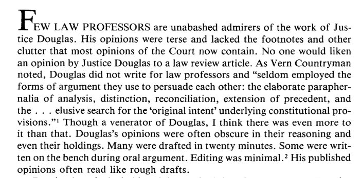 For context, here is former Douglas law clerk Stephen Duke describing how Justice Douglas wrote his opinions.