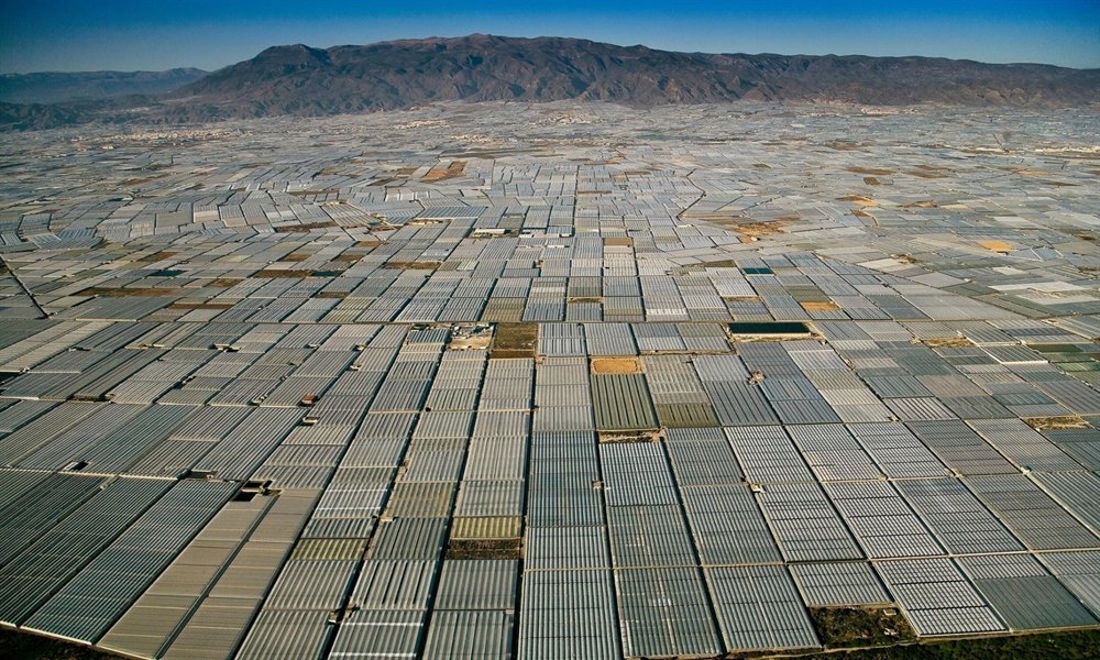 It is the largest concentration of greenhouses in the world covering 300sqm and can be seen from the ISS.