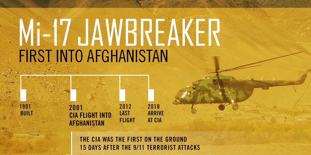 The Mi-17 helicopter used by our #JAWBREAKER team arrived at CIA Headquarters this month to serve as a symbol of the Agency response.