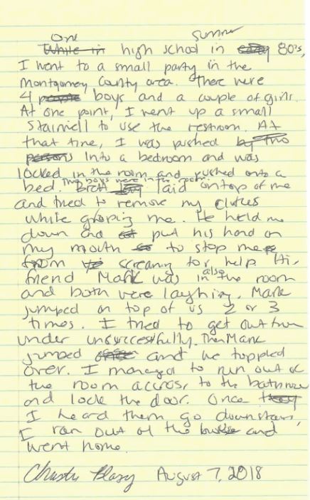 Also 4 boys and a couple of girls were at the party. Three of the four boys were Brett Kavanaugh, Mark Judge, and Patrick Smyth. So we are still missing at least one more boy. The couple of girls could just have been Christine and her friend, Leland Keyser.
