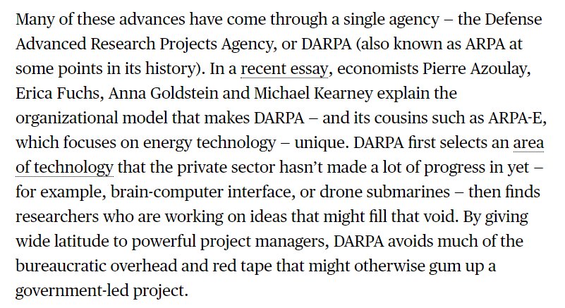We already have a government agency that does technology projects, and it works startlingly well! nber.org/papers/w24674