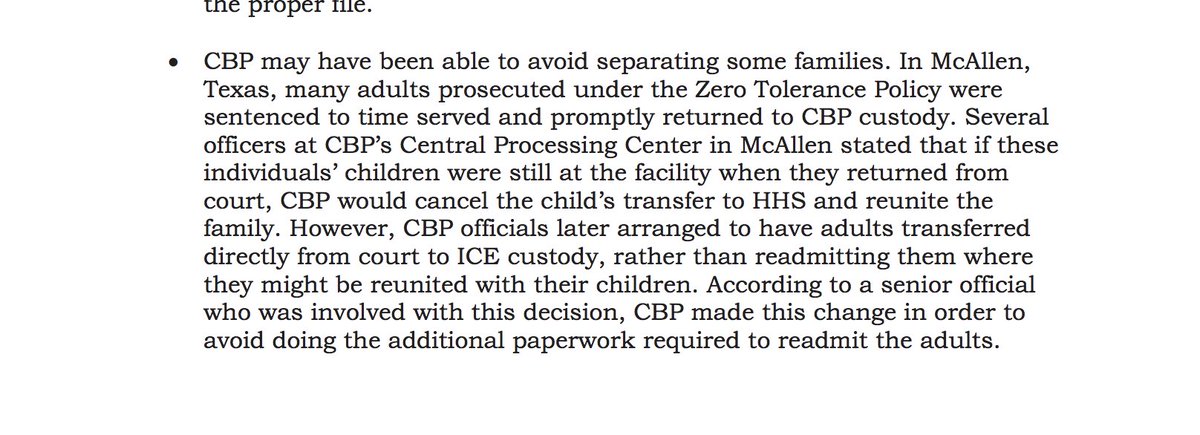 @kevincollier Investigators with the OIG also found that CBP could've reunited some families after the parents got time served for entering illegally. They chose not to in order to avoid additional paperwork and sent them directly to ICE custody. oig.dhs.gov/sites/default/…