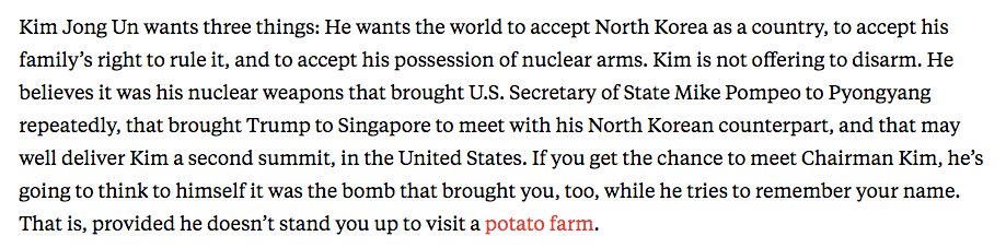 I remain hopeful that Steve will get his "Kim Yong Chol-is-a-dick" stories to tell the grandkids.