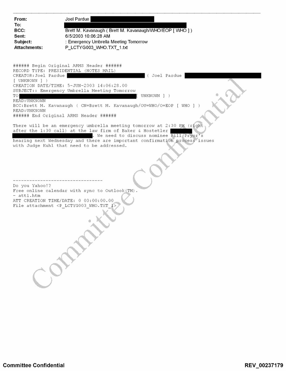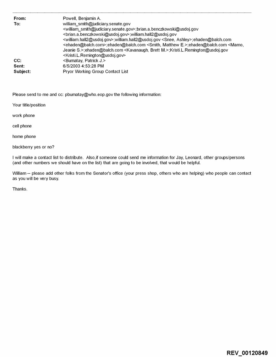 The reality? Ex. 2a – 2d: Kavanaugh was the one who first recommended Pryor. He was on the “Pryor Working Group” and smaller coordination and strategy groups for the Pryor nomination. He even apparently interviewed Pryor.