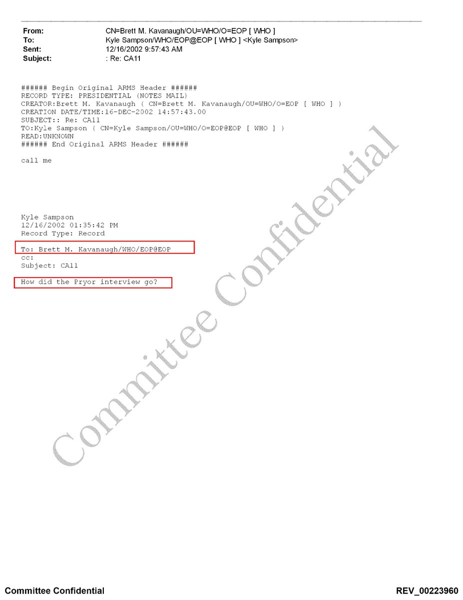 THREAD #2: A point-by-point breakdown of Judge Kavanaugh's claims about his work on Judge Pryor's nomination.
