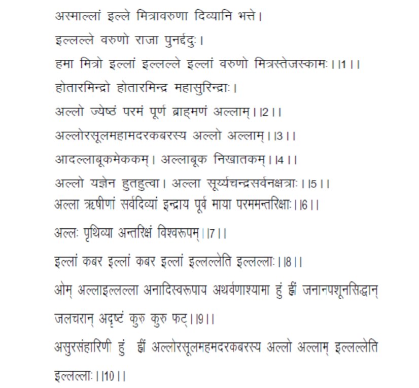 Akbar's dirty trick almost succeeded. Many manuscripts of Atharvaveda carried Allopanishad until 20th century.. It also had a chapter proclaiming the supremacy of Allah and the religion of Islam over polytheism. Swami Dayananda Saraswati started the movement to purge Allopanishad