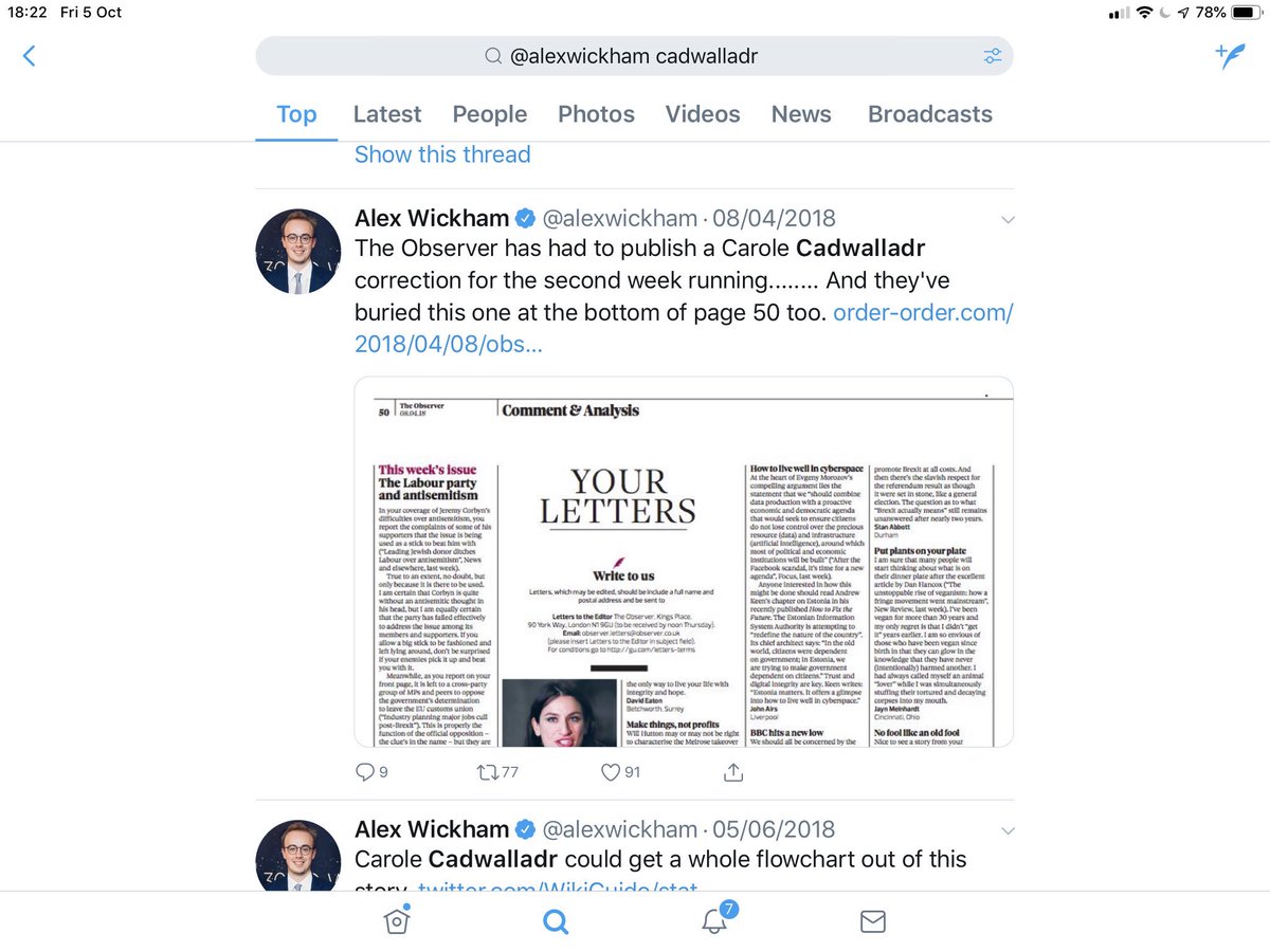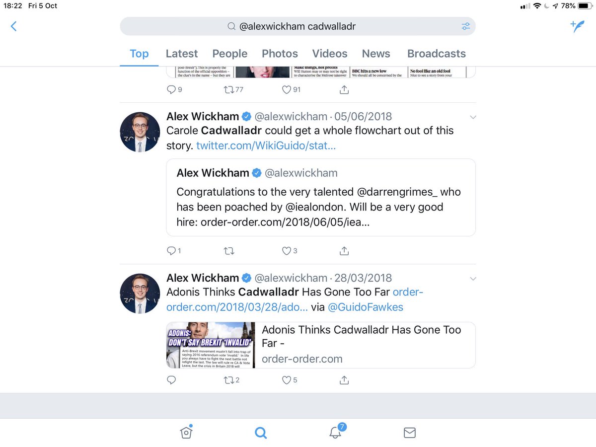 Maybe I’m getting this wrong but search “@MediaGuido Cadwalldr” and you get a lot of replies, but most the originating tweets have vanished