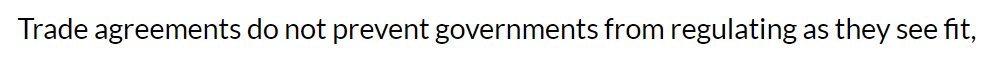 Usefully Liam Fox and DIT could start by finally accepting that trade agreements can affect food standards. It is almost unbelievable that the statement below - 100% factually incorrect - still appears on the website promoting consultation on CPTPP