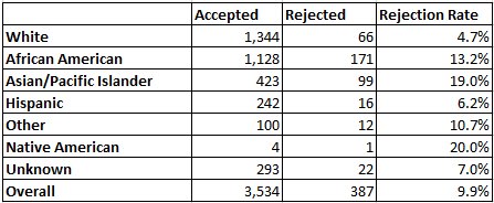 A bit of good news. The number of rejected ballots in Gwinnett County declined from 398 yesterday to 387 today. Election officials may be working to fix errors that caused some rejected ballots. Still, the rejection rate is a troublesome 9.9%, with clear racial disparities